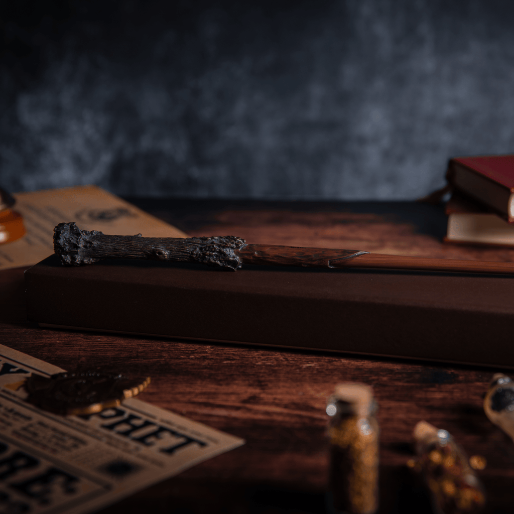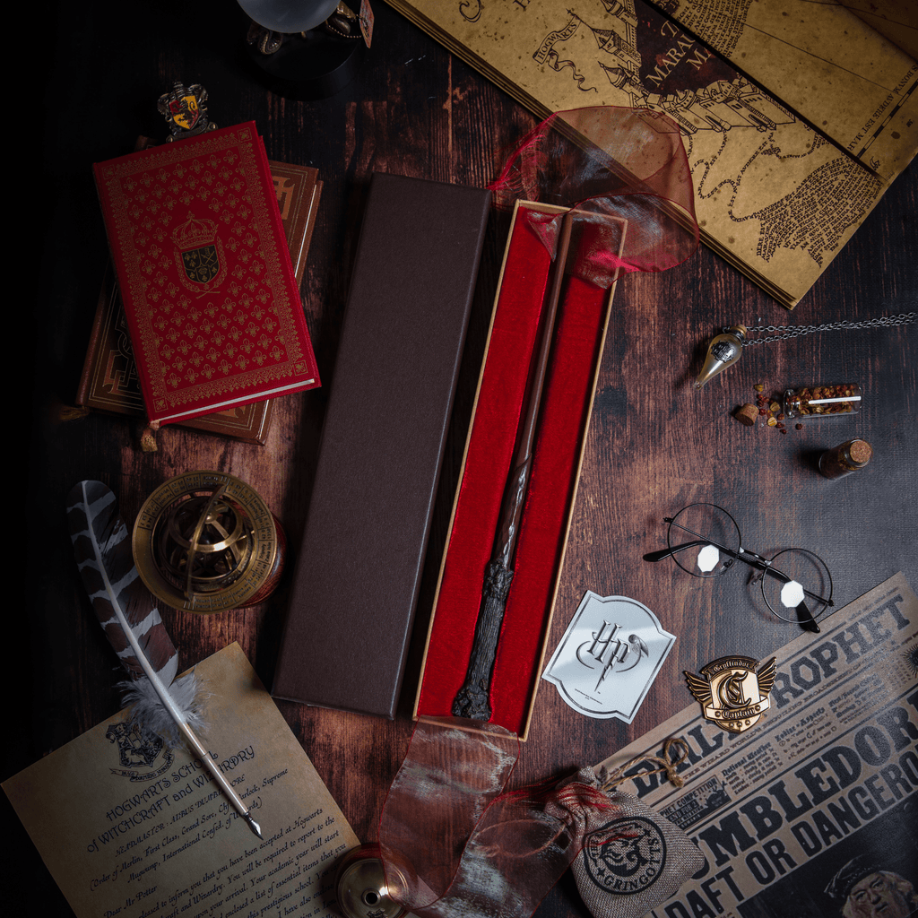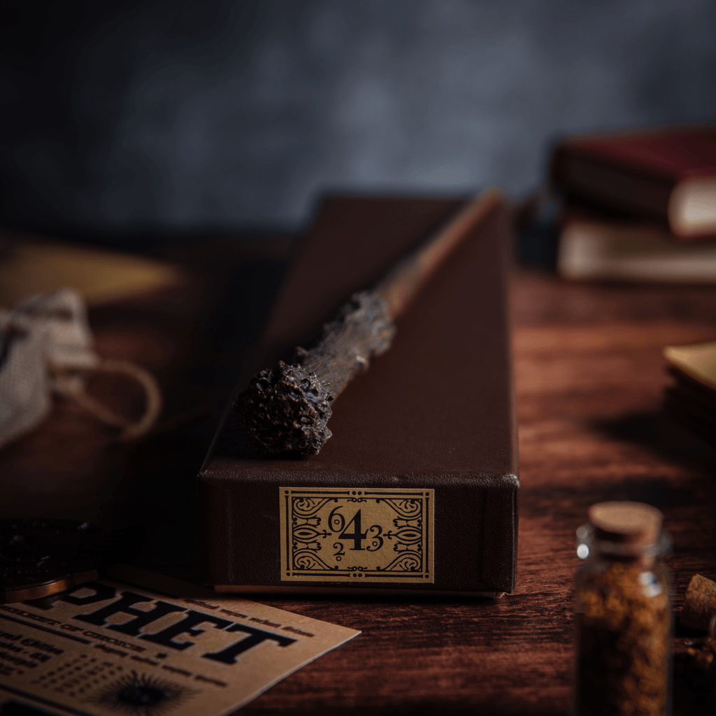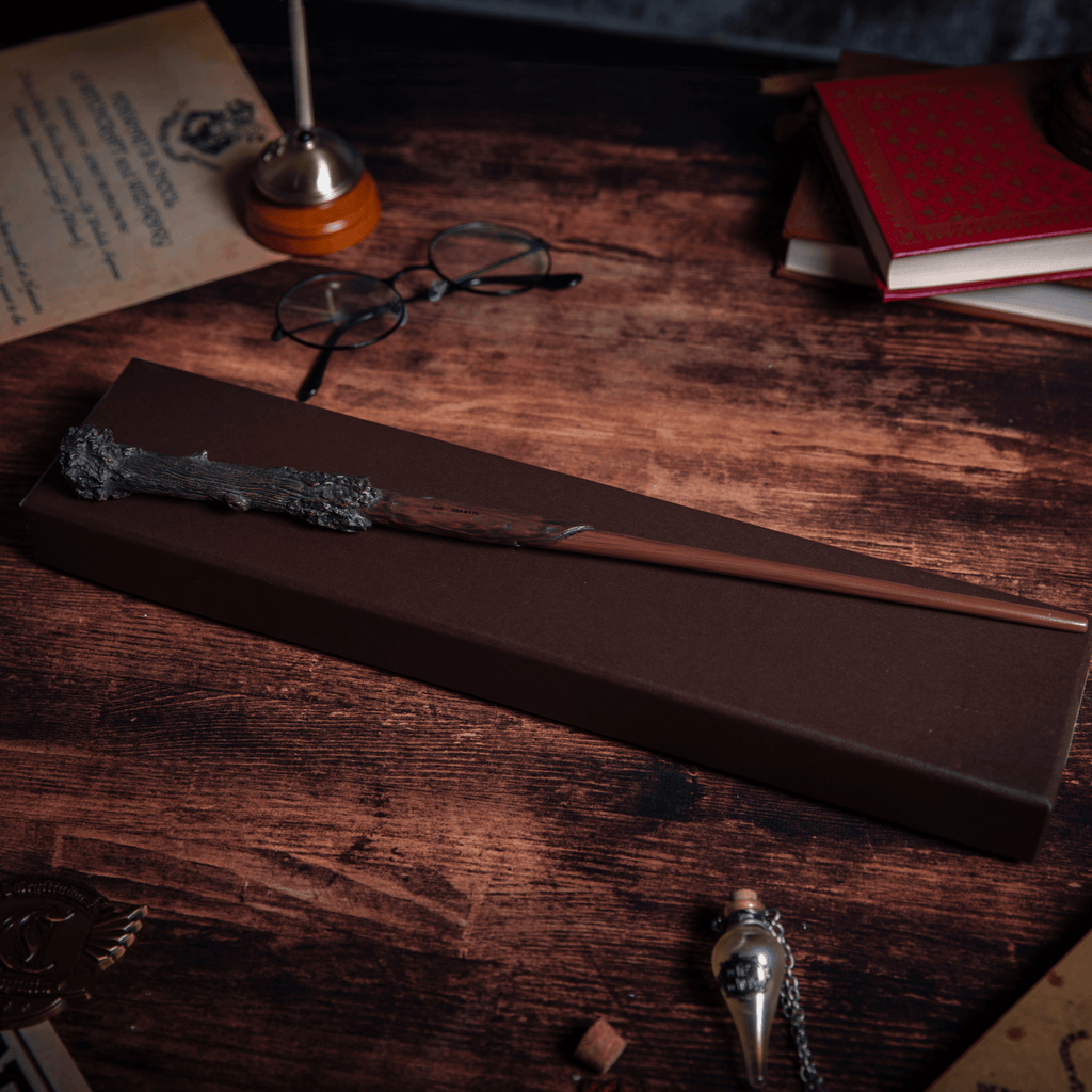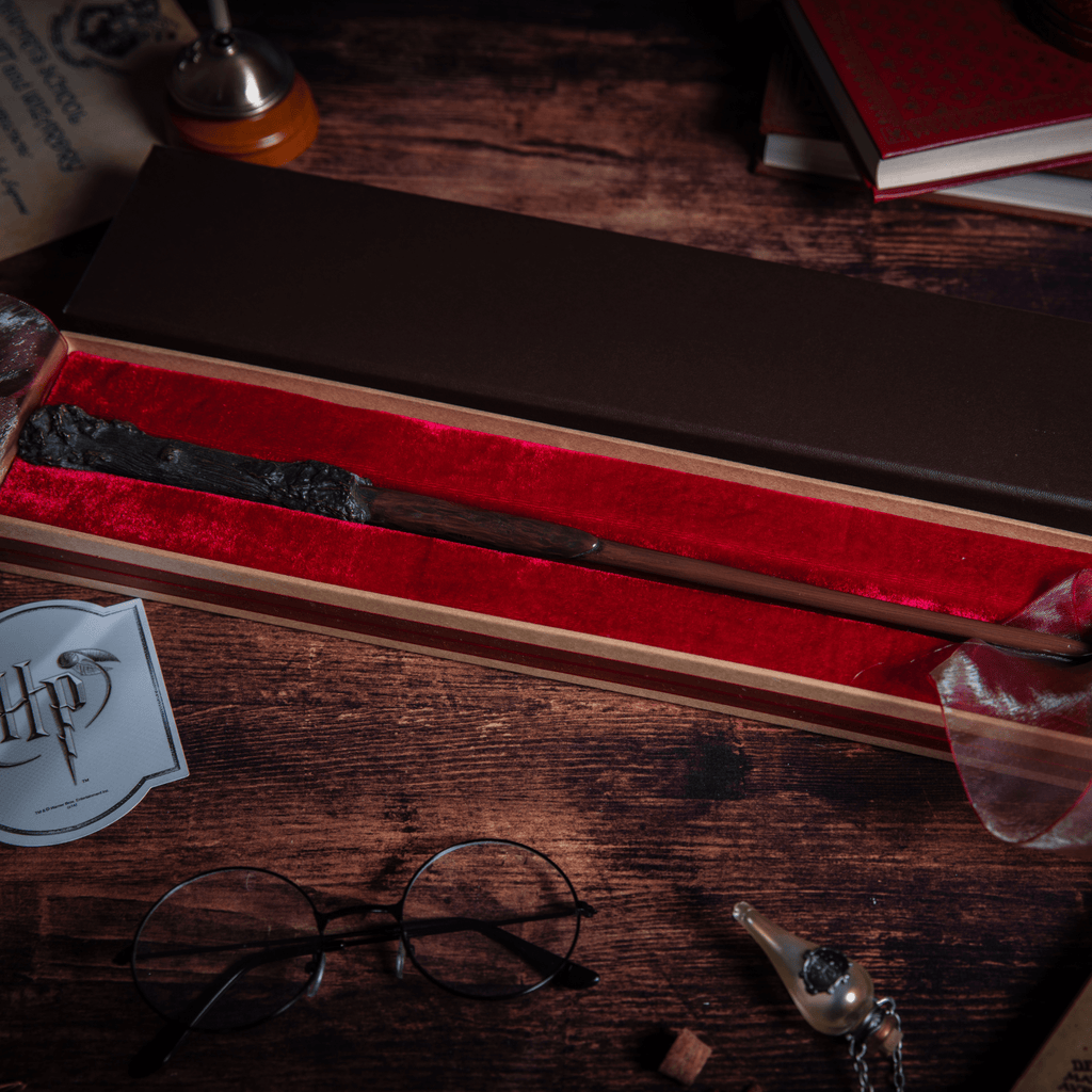 Réplique officielle de la baguette Harry Potter de la collection Ollivander, une réplique fidèle à celle que vous trouverez au chemin de traverse ! Celle-ci est présentée dans la boîte Ollivander qui est recouverte d'un écrin de velours et de ses voiles qui lui donnent un aspect très noble. C'est la baguette parfaite si vous souhaitez une collection haut de gamme. Dans le monde magique de Harry Potter, cette baguette est fabriquée à partir d'un bois de Houx et d'une plume de Phénix, tout comme le mage noir Voldemort.